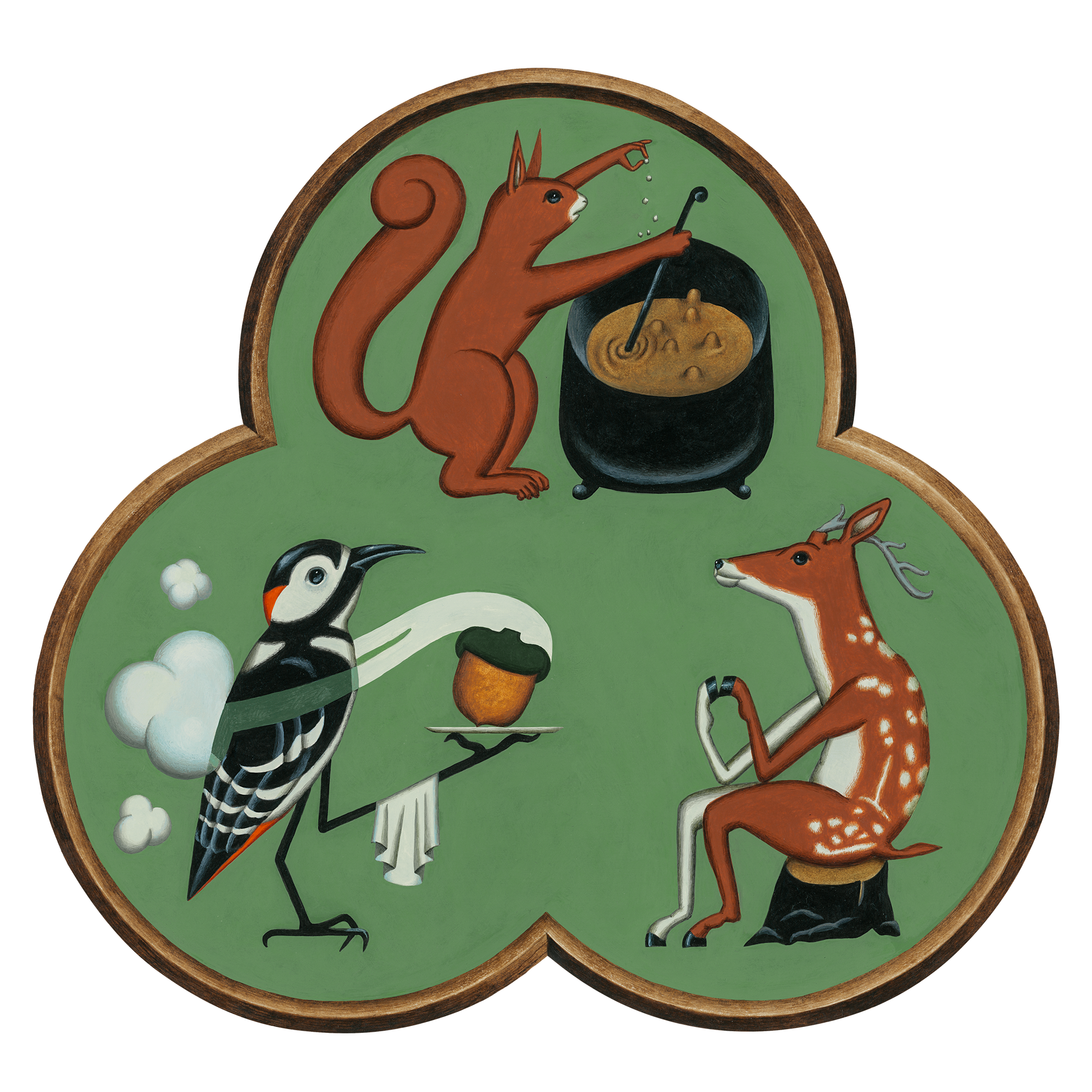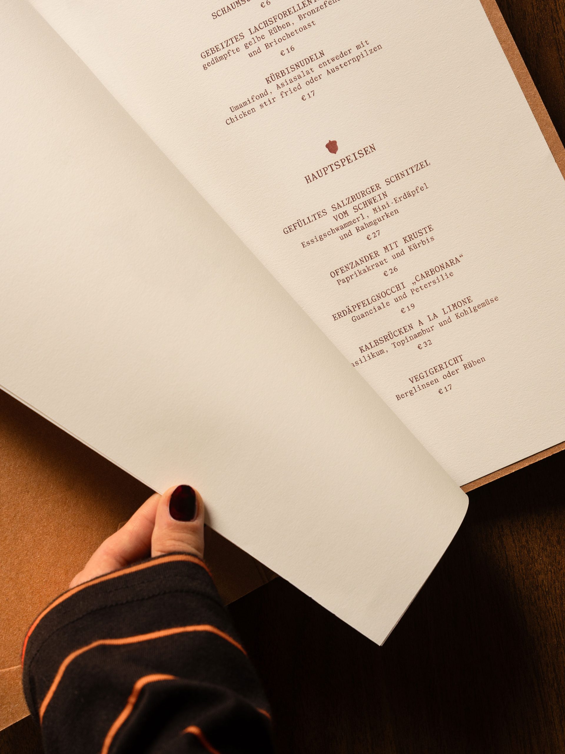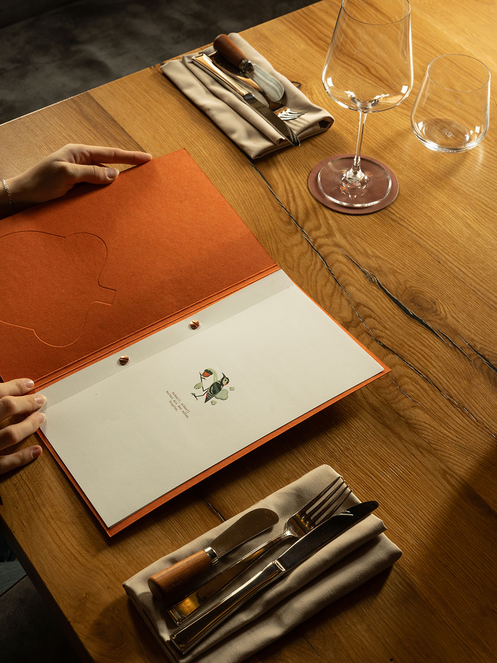 Wer mit Nachnamen Aichhorn heißt und wie ein Eichhörnchen die besten Vorräte im Keller hortet, der braucht ein dementsprechend auffälliges Branding. So wird das Eichhörnchen zum Koch, der Specht zum Kellner und das Reh zum Gast. Märchenhaftes Setting trifft raffinierte österreichische Küche und die Eichel als Zutat wird zum zentralen spielerischen Element.