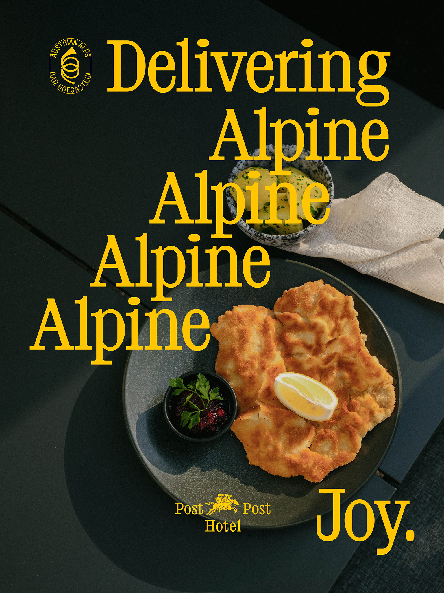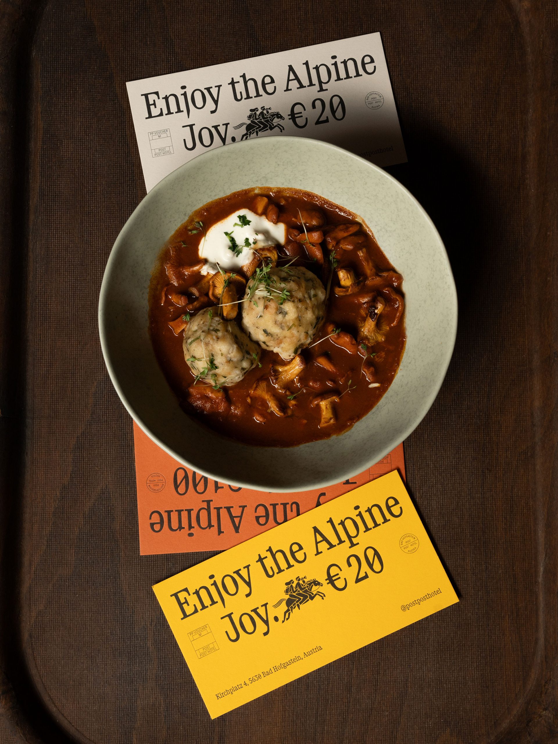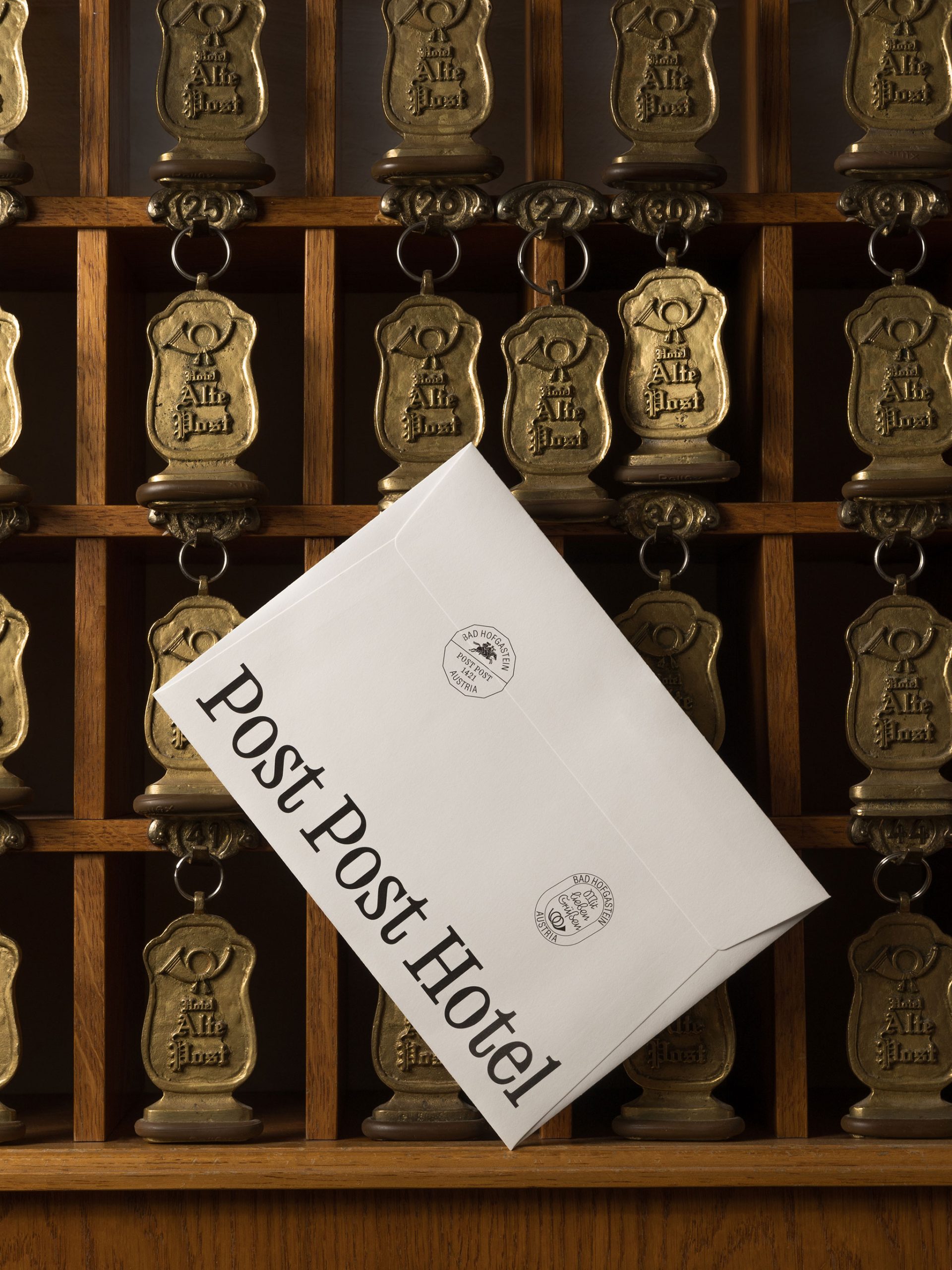 Der spielerische Umgang mit Illustration setzt sich dann im Restaurant dem “Postler” fort. Auch in den weiteren Gestaltungselementen spürt man den Postcharakter mal mehr oder weniger subtil. Der Corporate Font greift die Kontur der Briefmarken auf und ein Set mit zahlreichen Poststempel und Stanzungen schafft eine starke Differenzierung zu allen anderen Post-Hotels in der Nähe oder Ferne.